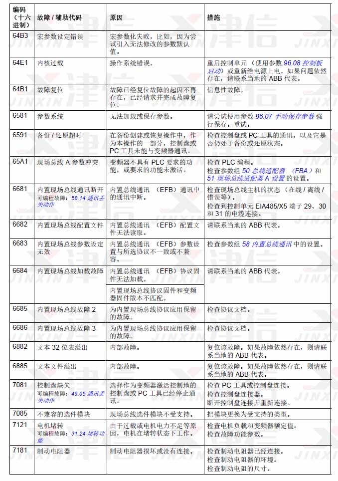 ABB ACS580變頻器故障代碼64B3,64E1,6581,6591,65A1,6681,6682,6683,6684,6685,6686,6882,6885,7081,7085,7121,7181