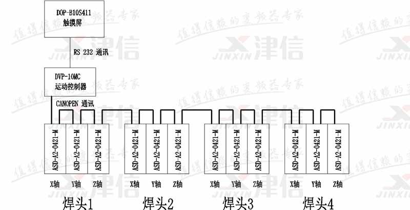 目前市場(chǎng)上以單焊頭超音波焊接機(jī)為主,但是單焊頭存在占用場(chǎng)地,效率低等缺點(diǎn),所以上海津信為客戶推出了以臺(tái)達(dá)10MC11T和ASD-A2-0421-M型伺服驅(qū)動(dòng)器為主開(kāi)發(fā)的4焊頭超音波焊接機(jī)。