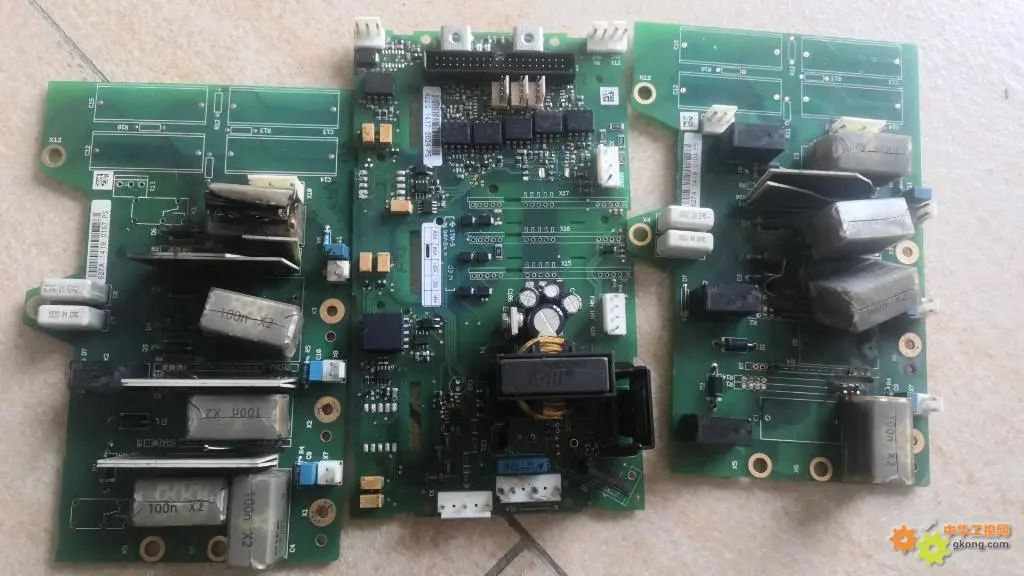 Vacon變頻器的整流一般都是采用可控硅半橋方式,觸發(fā)取樣直接采樣進(jìn)線電壓同步頭,接觸器常閉時(shí)就是給電容充電,斷開時(shí)就變成可控硅供電!原理簡單粗暴,所以你能在可控硅切入工作時(shí),聽到“嗡”的一聲。那是相電壓給母線供額定電壓,由于這時(shí)的電容電壓還不到額定值,這第一下的導(dǎo)通電流是很大的。停機(jī)很久的變頻器,如果沒經(jīng)過預(yù)熱,往往都熬不過這一下子。原因是,蓄能電容從欠壓,到額定電壓(ac690v供電,母線電壓大約在950v以上),這個(gè)浪涌往往會(huì)擊穿觸發(fā)板上的諧波吸收電容,進(jìn)而引發(fā)母線打火,燒壞板卡。