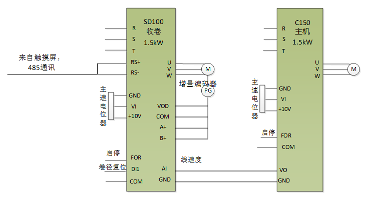 原收卷系統(tǒng)采用“變頻器+電機+磁粉+張力控制器”的模式,設備使用一段時間后需要對磁粉進行維護,且磁粉故障率較高,增加了廠家和客戶的故障點和維護成本;