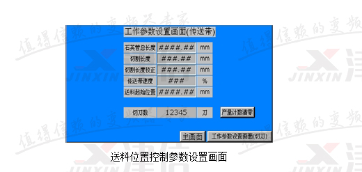 改造系統(tǒng)采用三臺(tái)Danfoss變頻器和兩塊MCO305,以及一個(gè)臺(tái)達(dá)HMI。系統(tǒng)采用RS485通訊。主機(jī)旋轉(zhuǎn)采用4kW變頻器直接拖動(dòng),通過HMI直接設(shè)定其運(yùn)行頻率。送料位置控制參數(shù)如下圖所示。這些參數(shù)在變頻器第19組參數(shù)開放出來,之所以采用HMI,主要是為了方便用戶進(jìn)行操作。